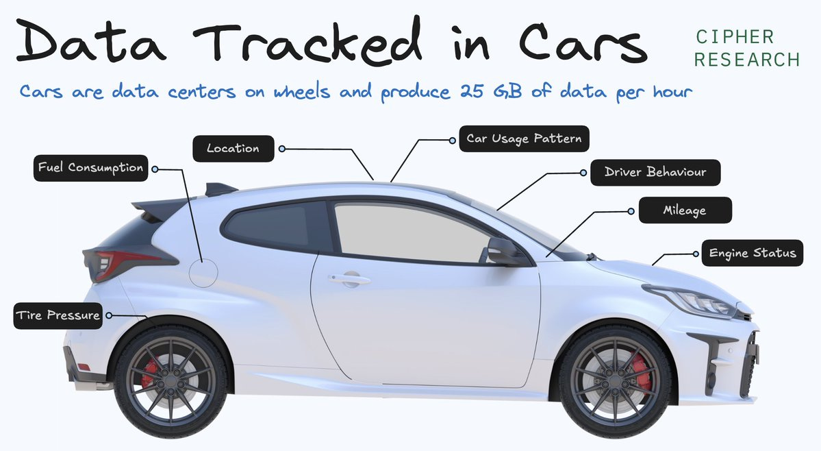 Cars today are akin to data centers on wheels, generating over 25 GB of data every hour. This data encompasses a wide range of information, including vehicle health, battery status, driver behavior, and location patterns.